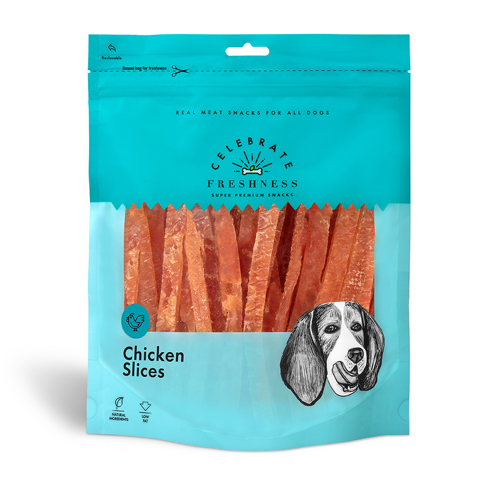 Chicken breast: 95%, starch: 1,5%, (Sorbitol, glyceral, potassium sorbate, salt) 3,5%